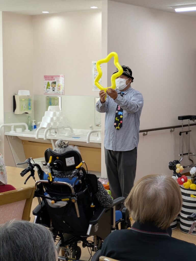そんな中、当施設では先日、プロバルーンアートの「風船職人 池田君」が来所してくださいました。